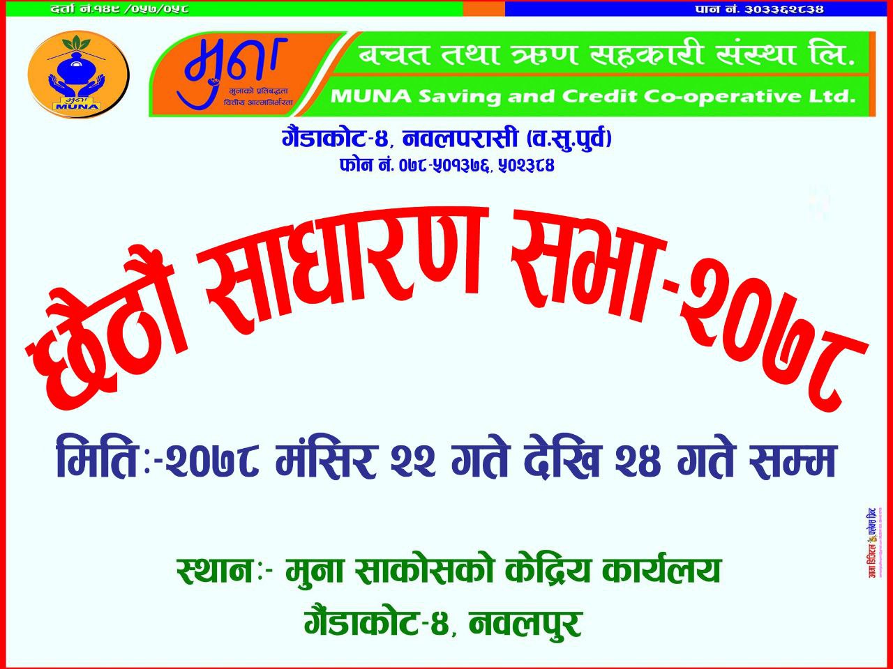 साधारण सभा सम्बन्धि सूचना